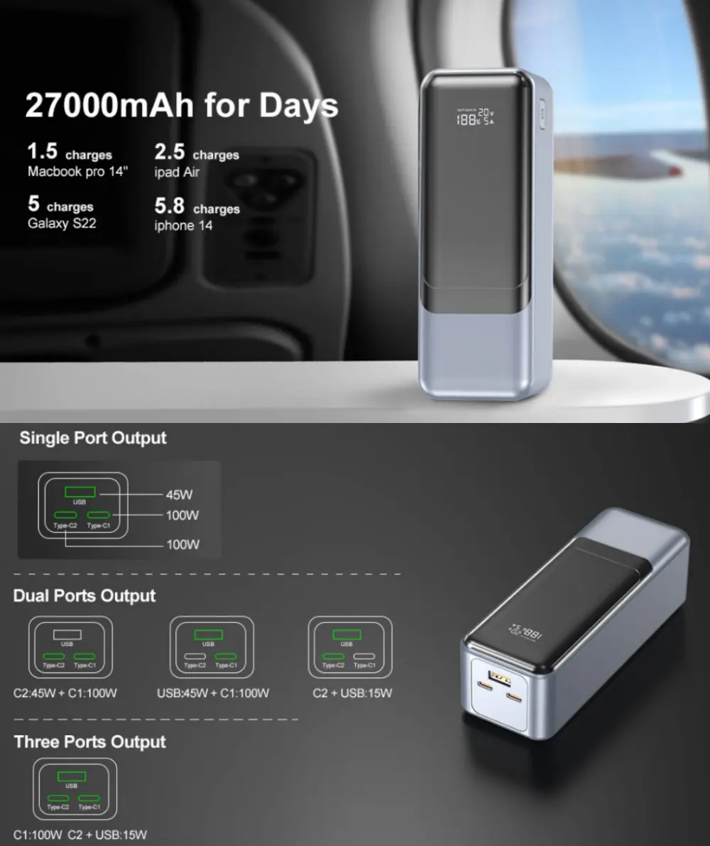 - One of the standout features is its 145W high output, which is capable of fast-charging even power-hungry laptops. This makes it an excellent choice for digital nomads and professionals. In addition, the intelligent LED power display helps you track the battery level in real time, ensuring youβre never caught off guard.