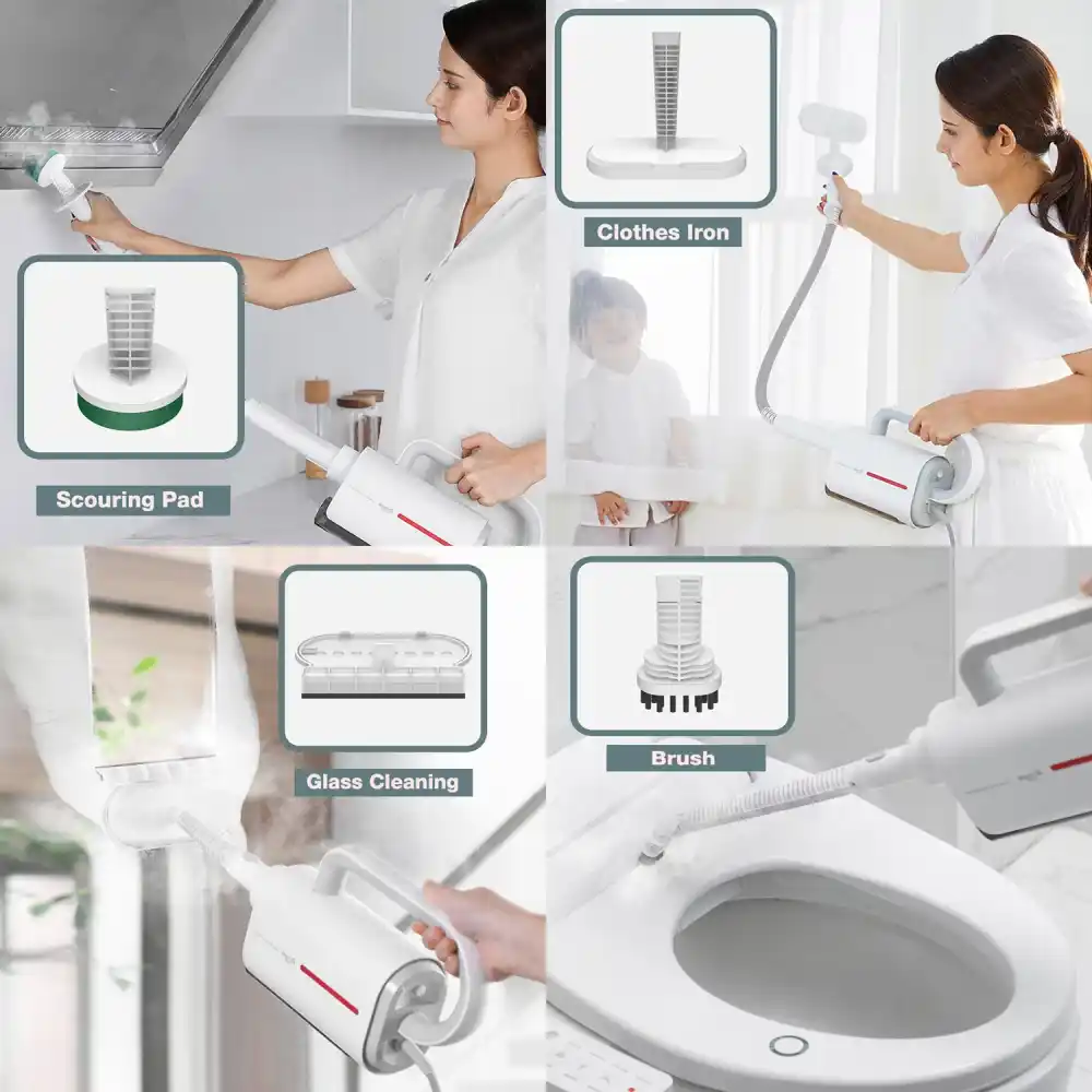 - The ZQ610 heats up in just 20 seconds, producing steam at temperatures over 150°C to eliminate stubborn dirt, grease, and bacteria. With no need for harsh chemicals, it offers chemical-free cleaning, ensuring better indoor air quality for your family. This eco-friendly feature also makes it safe for homes with kids and pets.