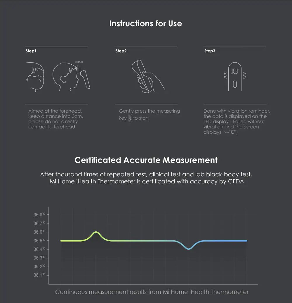 - Stay ahead in health monitoring with the Xiaomi Mijia iHealth Thermometer, an advanced non-contact infrared thermometer designed for safe, fast, and hygienic temperature readings. Whether for home, clinical, or travel use, this device is ideal for families, especially for babies, children, and the elderly.