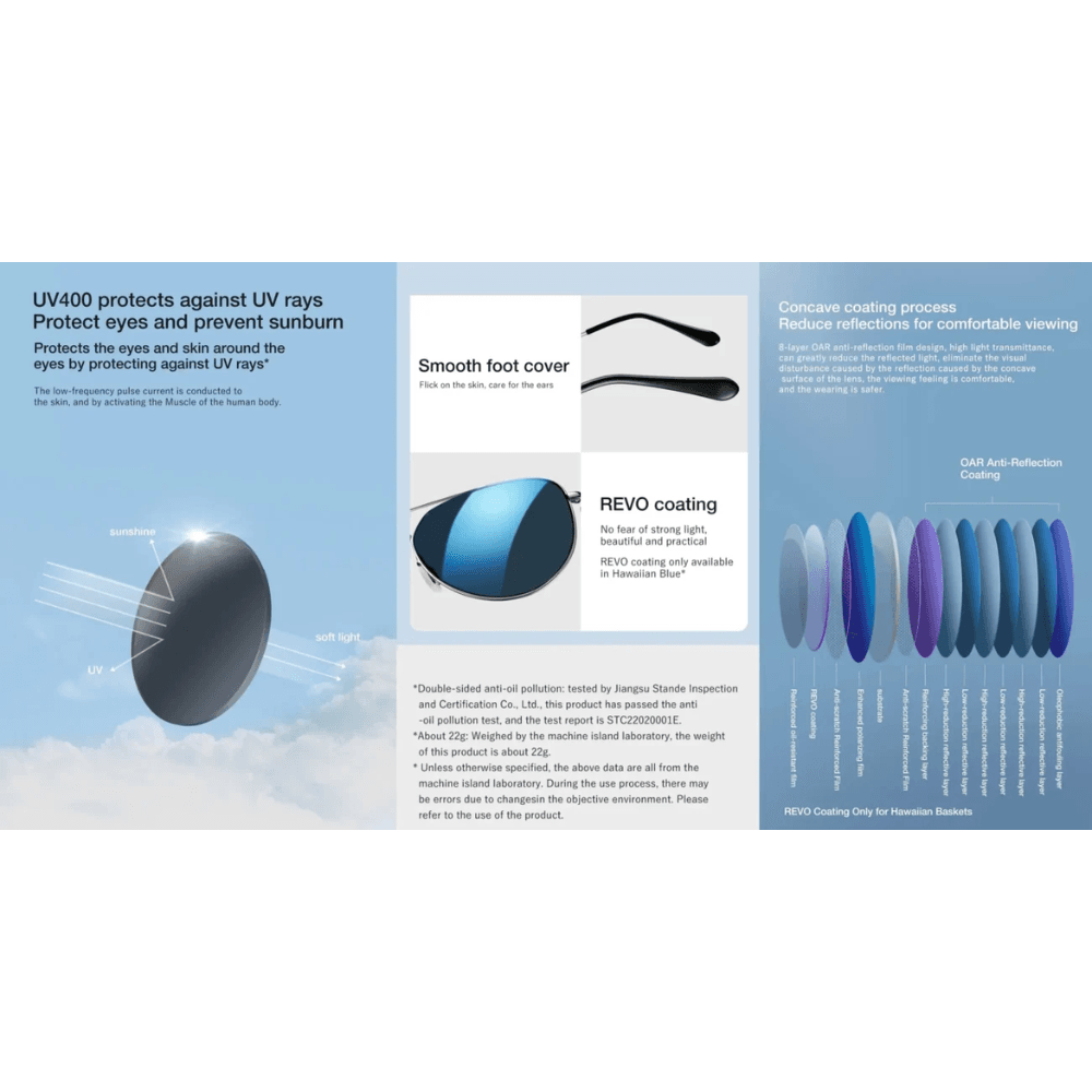 - The Xiaomi Mijia Pilota Classic Aviator Anti-UV Sunglasses (MSG01BJ) feature UV400 protection. The nylon polarized lenses are shatterproof, lightweight, and flexible, providing nearly 100% UV protection. Their excellent reflective index and resistance to heat and chemicals make them ideal for daily use.