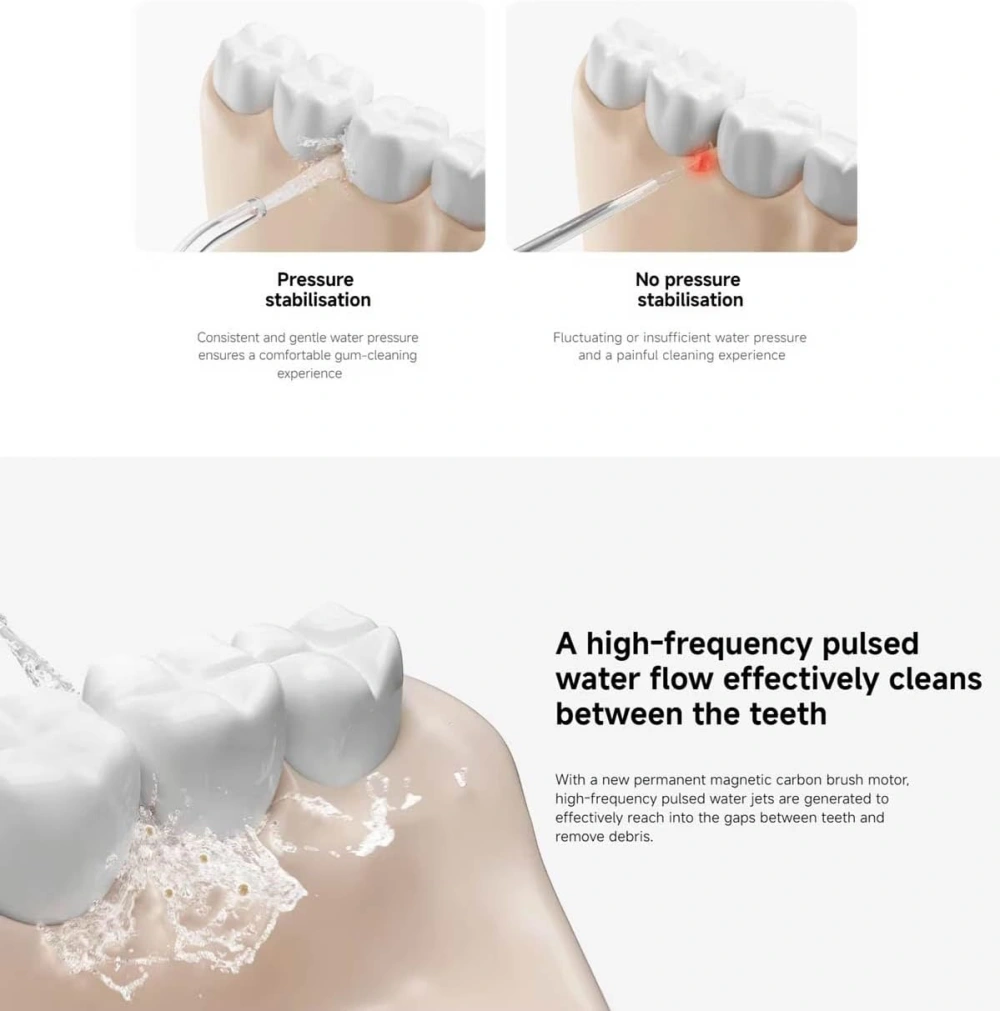 - Equipped with a 200mL large-capacity water tank, the Mijia Water Flosser 2 allows continuous flossing without frequent refills. The micron bubble technology creates high-energy water bursts that reach deep between teeth and below the gum line, helping to eliminate plaque with a removal rate of up to 99.6%.
