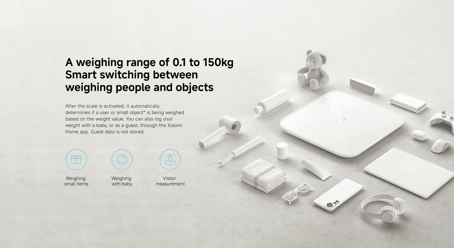 - The Xiaomi S200 SmartScale is an innovative device designed to revolutionize health tracking. With seamless integration into the Mijia APP, it provides detailed insights into weight and overall health metrics. Users can easily switch between g/kg units, catering to diverse preferences. Additionally, the scale’s versatile weighing range—from 0.1kg to 150kg—makes it suitable for weighing both individuals and objects.
