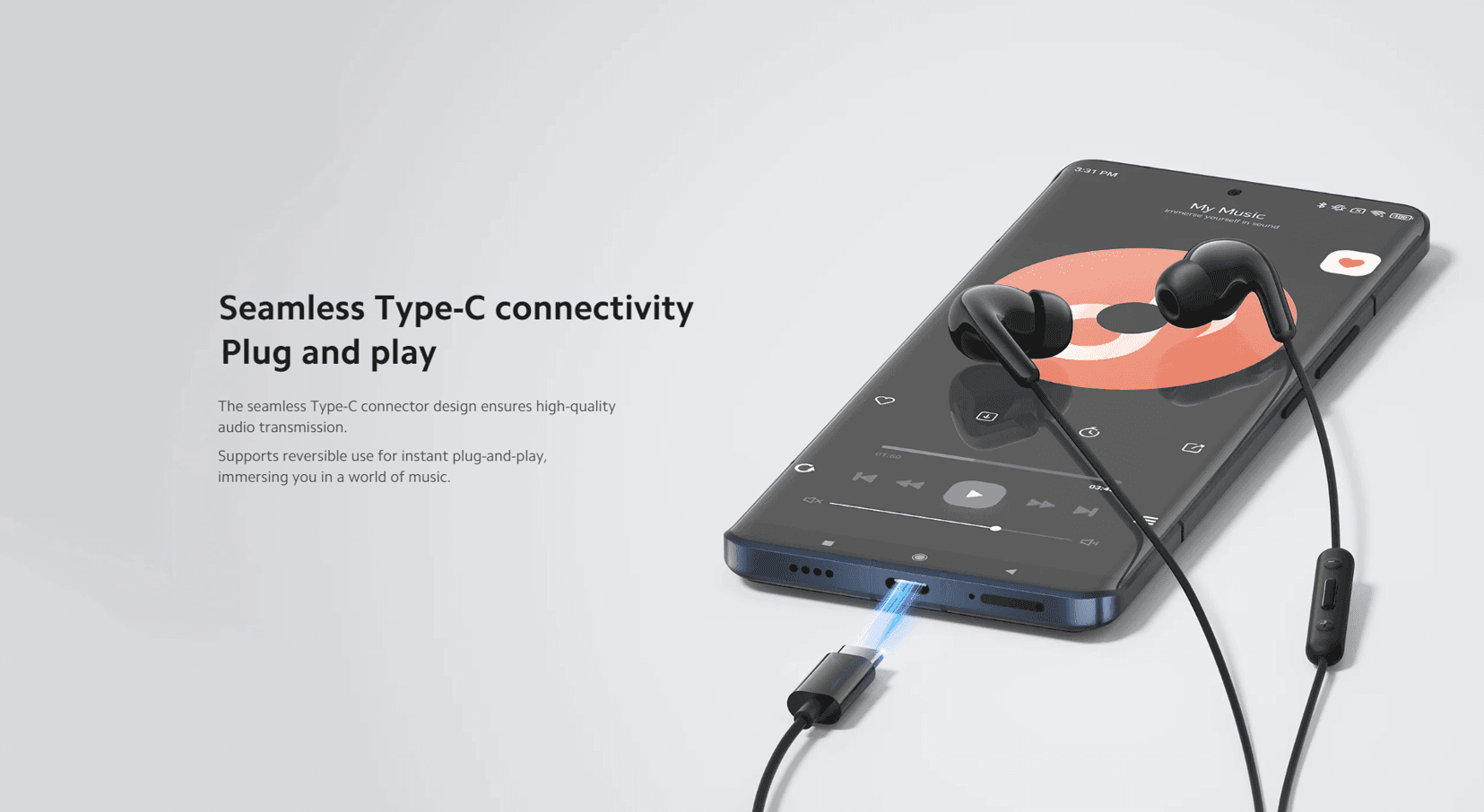- The Xiaomi Type C Earphones provide a premium audio experience by combining superb sound, durability, and smooth ease. These earphones have a Type-C connector and feature plug-and-play capability, allowing you to listen to your favorite music right away. With a huge 12.4mm driver and superior audio tuning, the earphones provide clear and detailed sound throughout every note, providing rich audio quality directly to your ears.