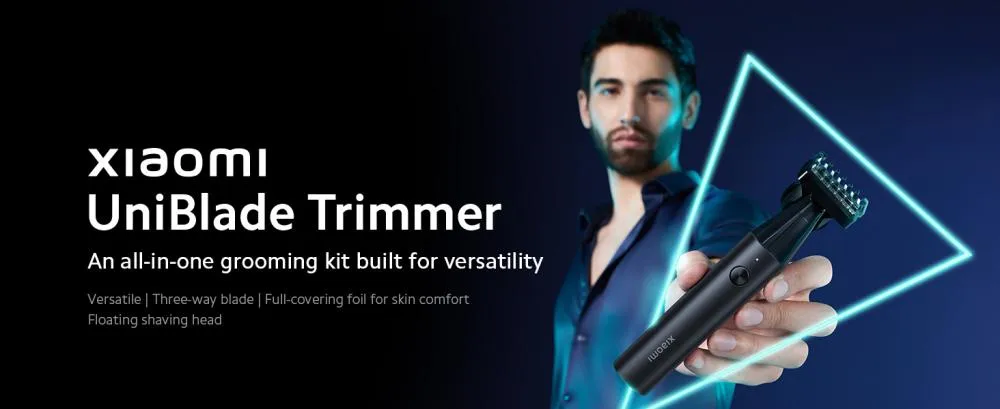 - Introducing the Xiaomi UniBlade Trimmer, an all-in-one grooming kit designed to meet your precise grooming needs. This innovative trimmer equipped with a skin-friendly blade mesh, which ensures a gentle and smooth shaving experience while minimizing irritation. Whether you’re grooming facial hair or trimming body hair, the Uniblade Trimmer is designed to offer exceptional comfort and efficiency.