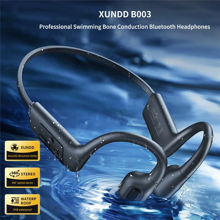 - XUNDD B003 Bone Conduction Bluetooth Headset is designed for active lifestyles, especially swimmers and outdoor enthusiasts. With IPX8 waterproof protection, it’s built to withstand full submersion, making it ideal for underwater use. Whether you’re swimming laps or caught in heavy rain, this headset continues to deliver high-quality audio.